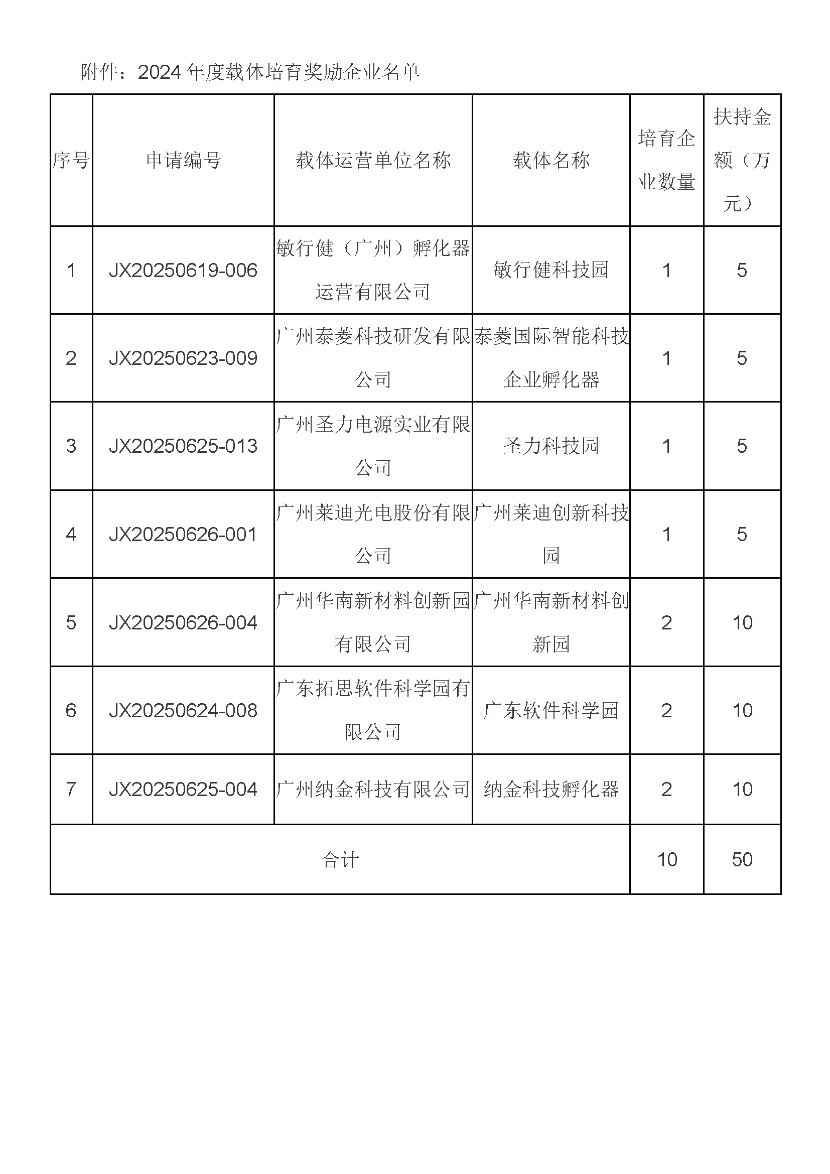 根据《广州开发区(黄埔区)促进经济高质量发展政策措施》(穗埔府规〔2024〕5号)文件精神,你司获得2024年度载体培育奖励(详见附件)。现同意拨付你司2024年度载体培育奖励,请你司根据本通知于10月9日-10月17日登录广州开发区政策兑现服务信息系统(http://zcdx.gdd.gov.cn)完成网上请款申请,办理资金拨付手续: