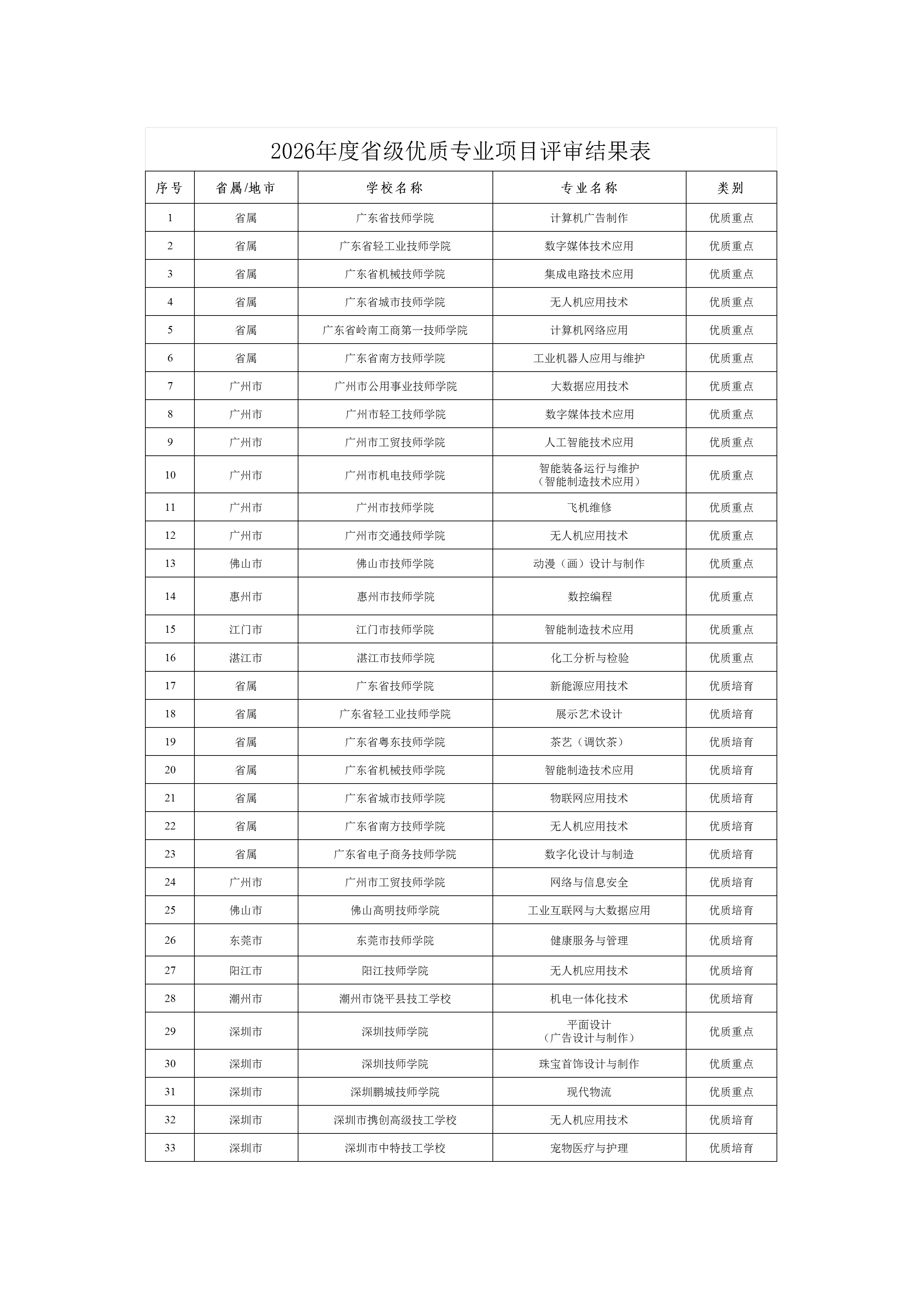 根据《关于开展2026年度省级技工教育专项资金项目集中评审工作的请示》,我处于2025年9月18日召开省级优质专业专家评审会,现将评审通过单位名单予以公示。